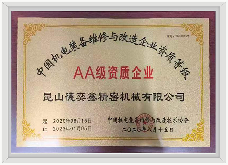中国机电装备维修改造企业资质证书